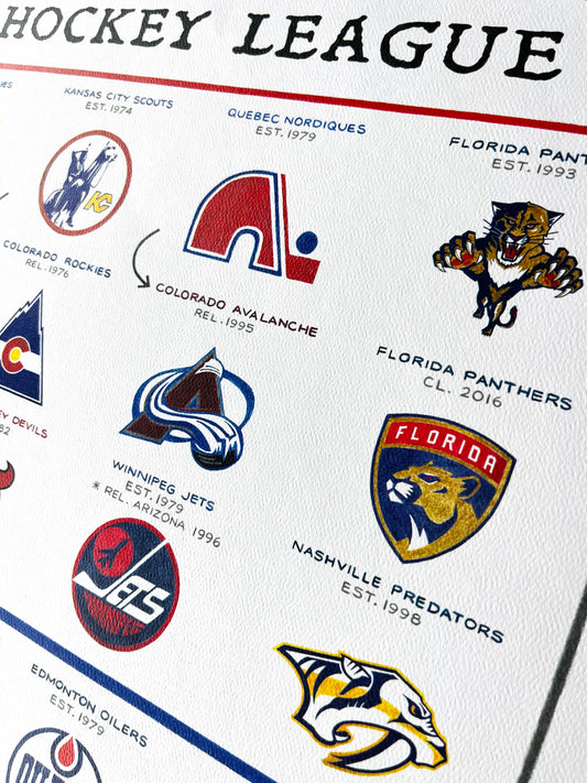 Every element within our artwork is recreated from scratch. Using an architectural approach, Chandler measures all logos, fonts, structures and details, and then use estimations and freehand to draw them as closely as possible to the original. With the assistance of a compass and straight edges, the images are originally drawn in pencil and then brought to life with colored pencil. The end result is each detail is drawn by hand and perfectly imperfect. Each print made for distribution is created using an offset printing press process and printed on a 80 pound brilliant white textured paper.