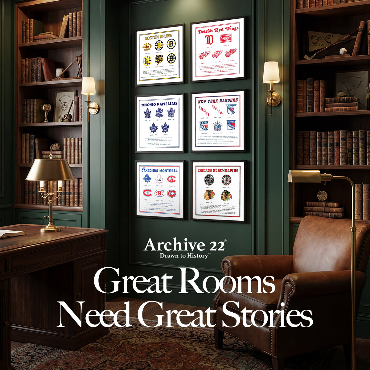 Introducing our first series of team pieces for the NHL. This bundle includes the Evolution of Logo prints for the Original 6 NHL teams.